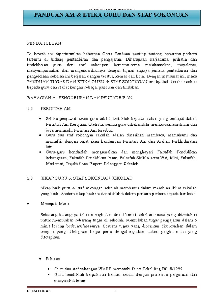 You have just read the article entitled. Arahan Am PANDUAN AM STAF SEKOLAH 11 Selaku pegawai kerajaan guru tertakluk kepada segala arahan yang terdapat dalam Perintah Am Kerajaan. Panduan Am Untuk Staf Sekolah SK Taginambur Tamparuli SABAH MALAYSIA.