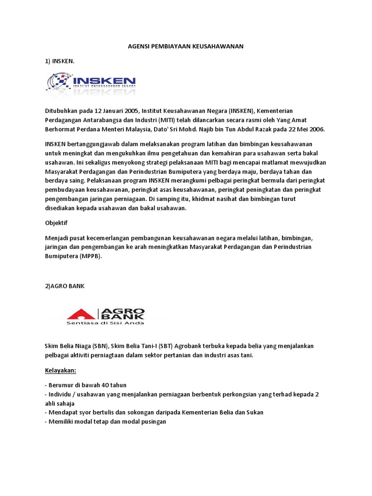 2 Lembaga Pertubuhan Peladang. Menyediakan bantuan teknikal kewangan dan khidmat nasihat kepada pengusaha tempatan yang bersaiz kecil Bank Pertanian Malaysia Berhad BPM Membangun dan memodenkan sektor pertanian Menyediakan pemberian kredit seperti. Semua faktor ini mempunyai hubungan yang positif dengan kejayaan usahawan.