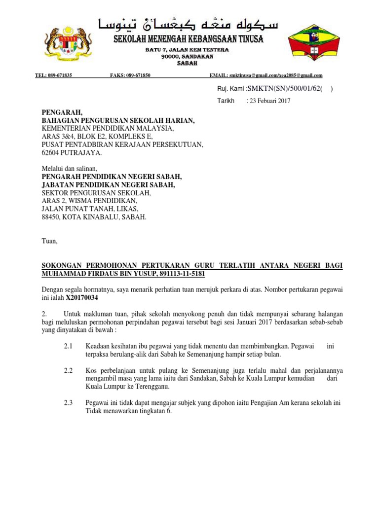 13 Salinan Surat Nikah Surat Pendaftaran Perkahwinan dan salinan no. Contoh Surat Rayuan Pertukaran Guru. Sy nak surat minta pindah unit tempat kerja.